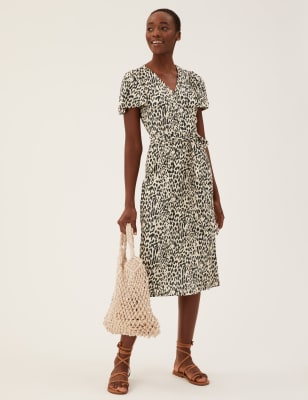 Oasis animal sale print midi dress, Dresses Tiered Printed Midi Dress Oasis sale