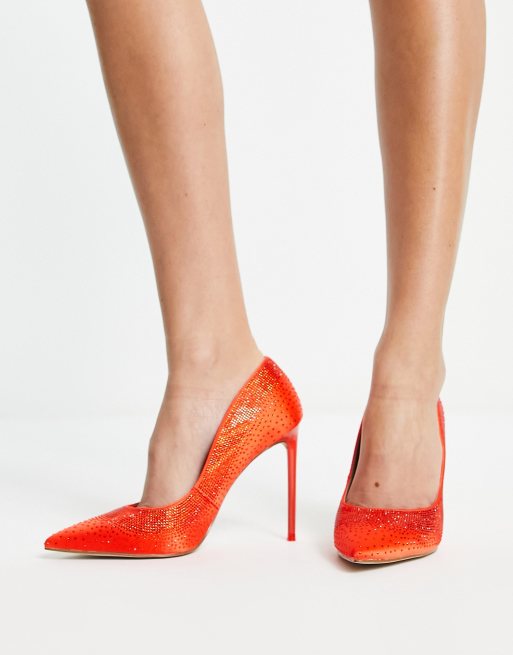 Steve Madden Valorous rhinestone heeled shoes in orange satin