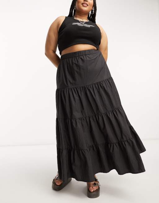 COLLUSION Plus tiered taffeta maxi skirt in black ASOS