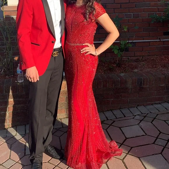 Poshmark sale evening gowns, Red beaded evening gown sale