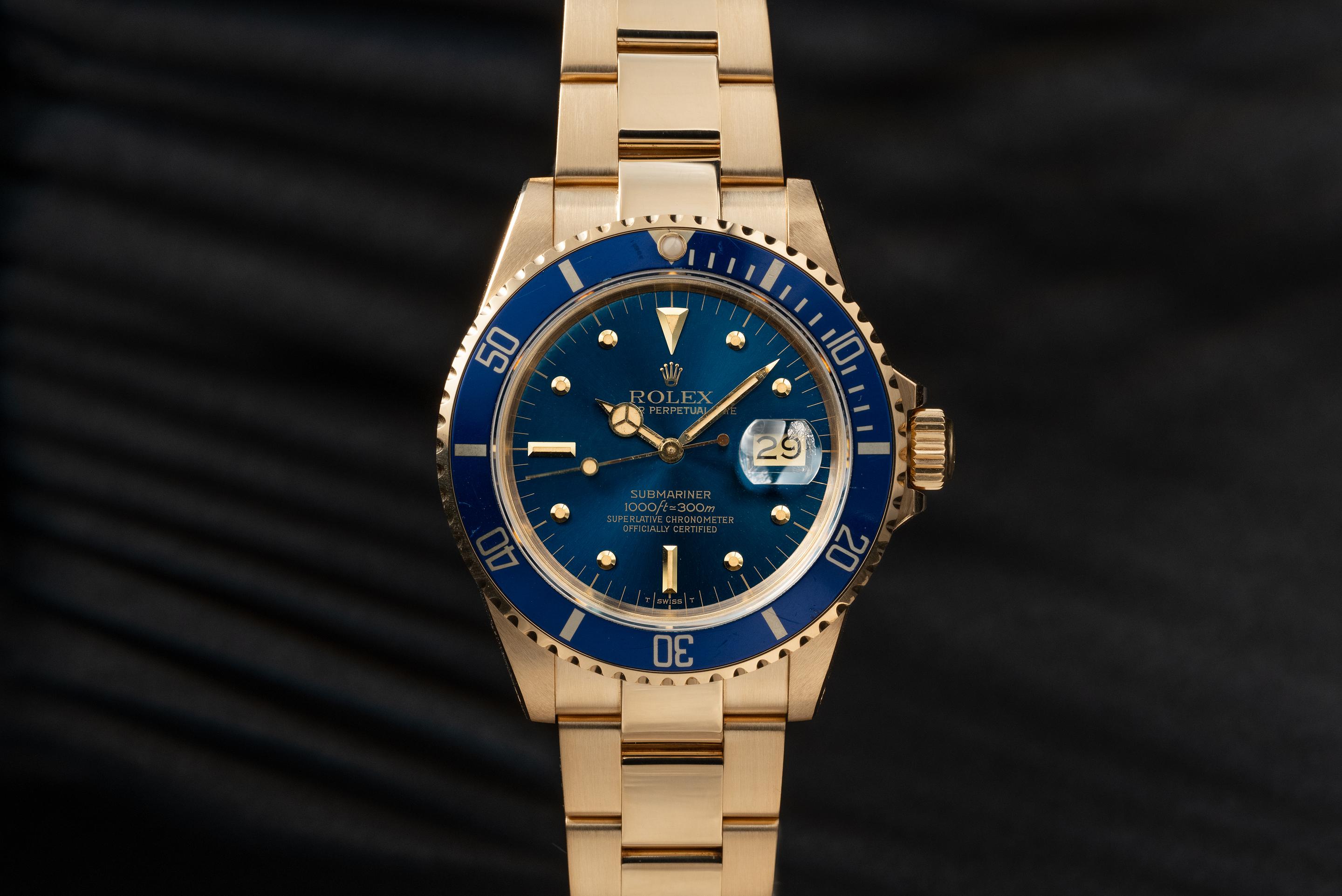 1984 Rolex Submariner 16808 Blue Nipple Dial 18K Yellow Gold