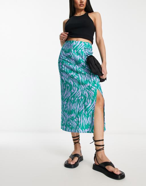 Vila wrap midi skirt with ruched side detail in green print ASOS
