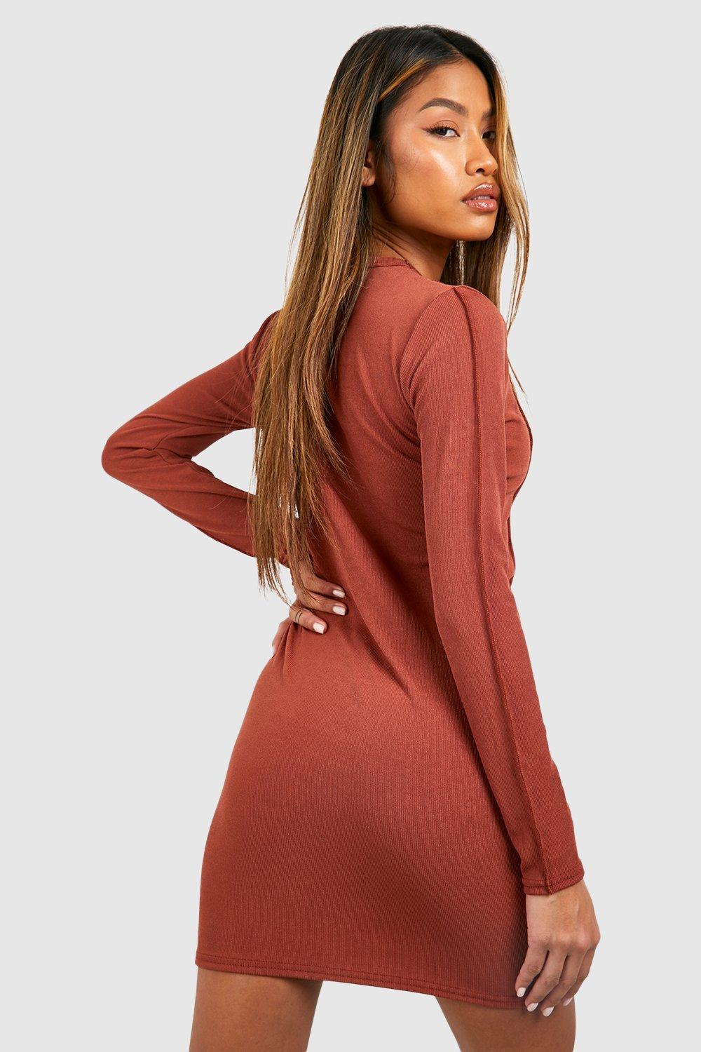 Rust Linen Cut Out One Shoulder Bodycon Dress PrettyLittleThing