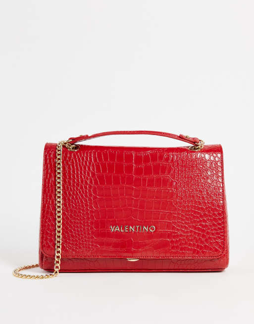 Valentino Bags Grote Sac bandouli re avec rabat effet croco Rouge fonc