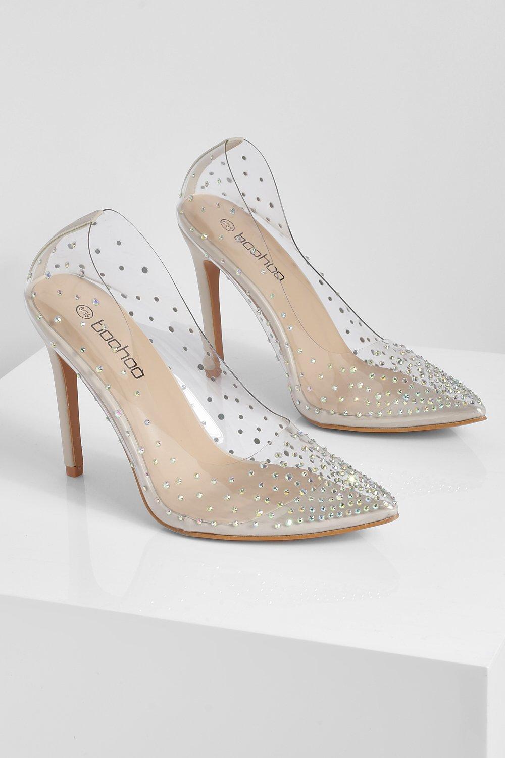 Donna Trasparente Stiletto Scarpe Col Tacco IN PVC Festa Tacchi a