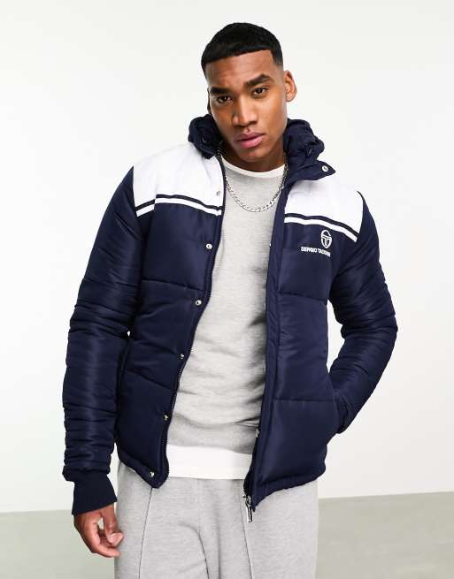 Sergio tacchini sale hooded jacket, Sergio Tacchini blocked puffer with logo in navy ASOS sale
