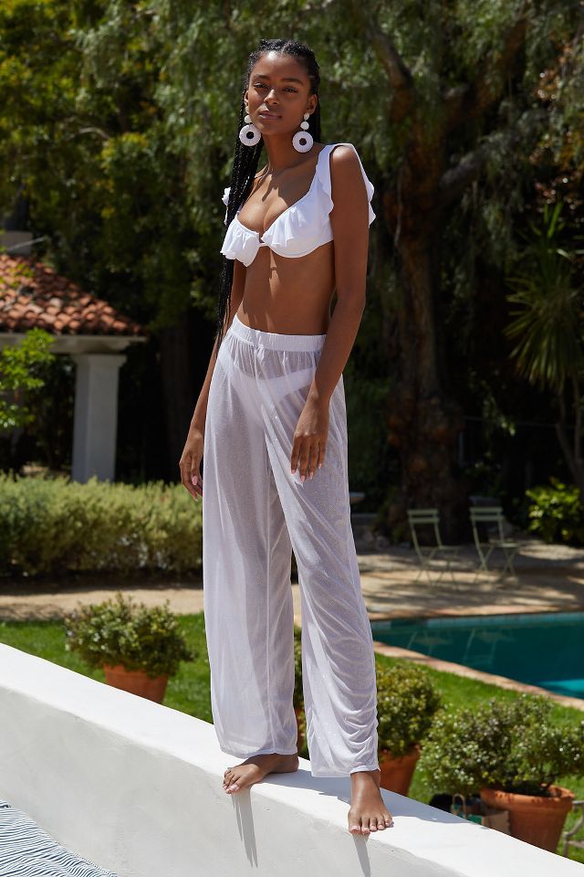 Sheer pants sale, BLACK SHEER MESH RUFFLE SIDE BEACH PANTS ROCHELLE S FASHION BOUTIQUE sale