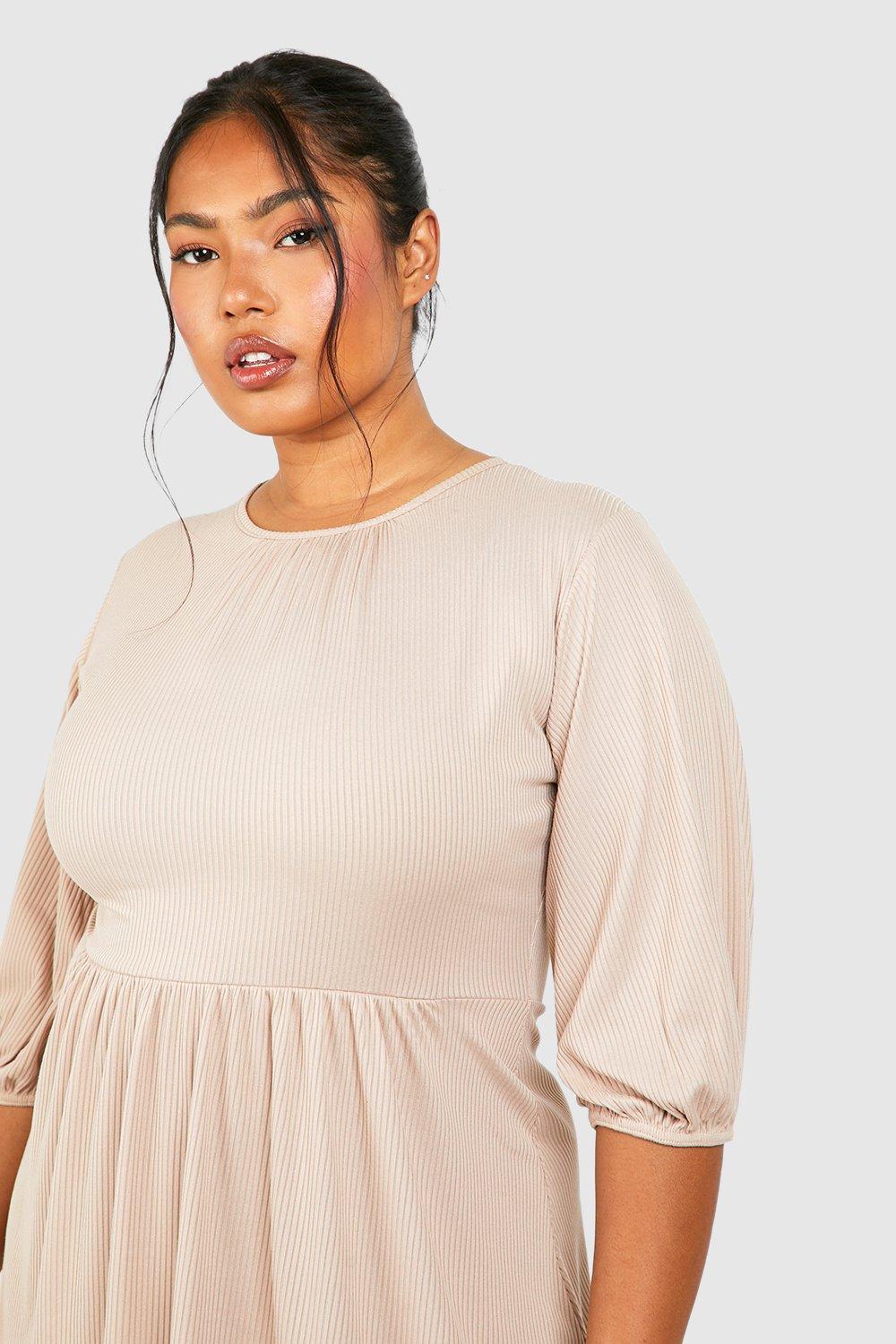 Women s Plus Soft Rib Short Sleeve Skater Dress Boohoo UK