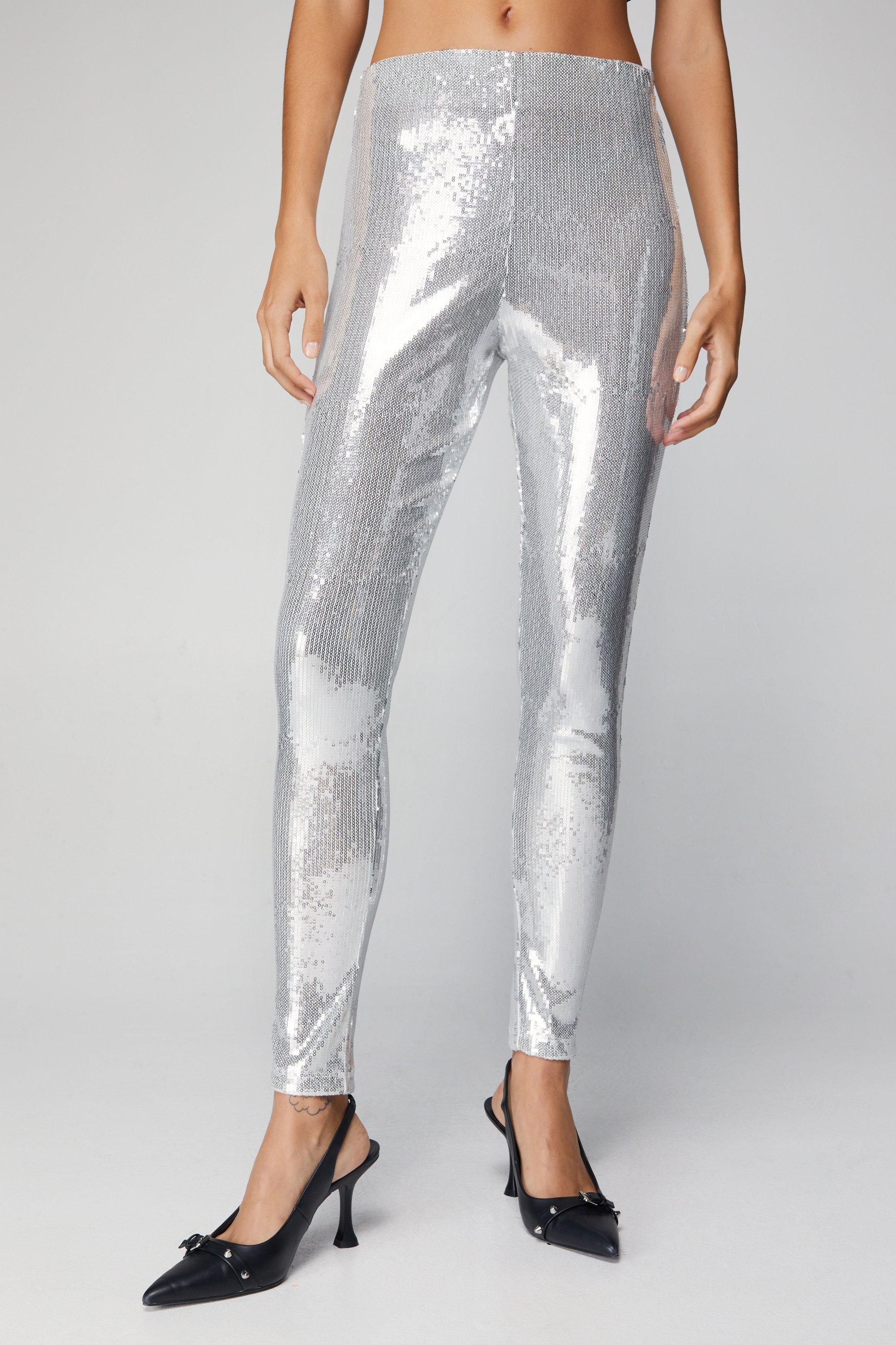 Silver sale sequin leggings, Silver Sequin Leggings sale