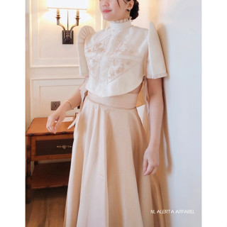 Preloved Modern Formal Filipiniana 2pc Dress Top and Long Floral A