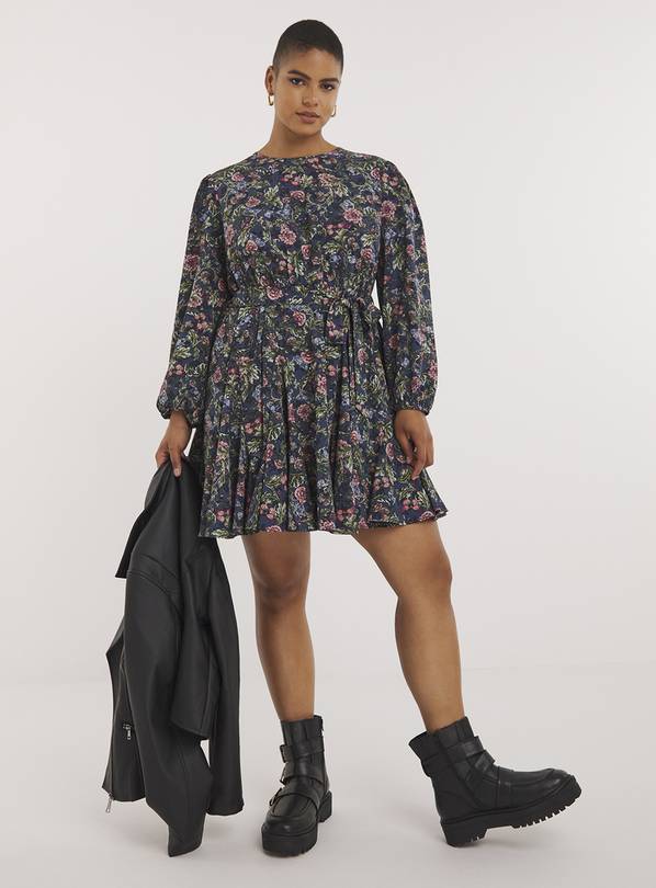 Buy SIMPLY BE Grey Floral Belted Georgette Skater Dress 26