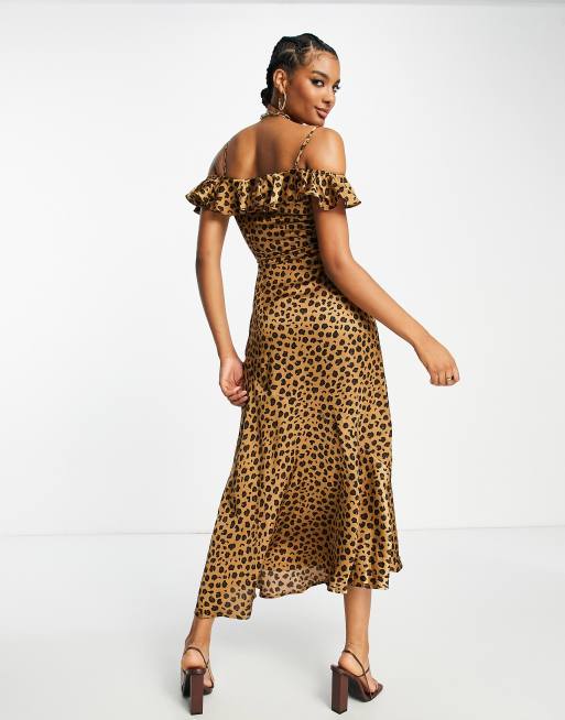 Never Fully Dressed frill sleeve cut out maxi dress in leopard
