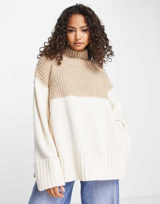 ASOS DESIGN high neck sweater in color block in cream and camel ASOS