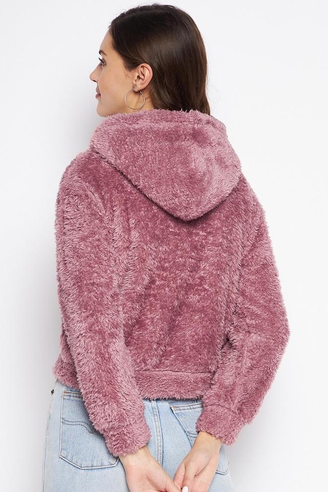 Buy MADAME Blush Solid Fur Hood Women s Sweatshirt Shoppers Stop