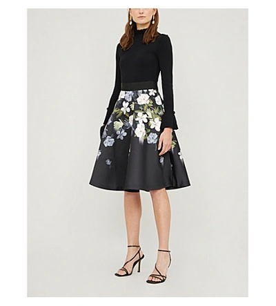 Ted baker sale nerida dress, Ted Baker Nerida Floral print Knitted And Satin twill Midi Dress sale