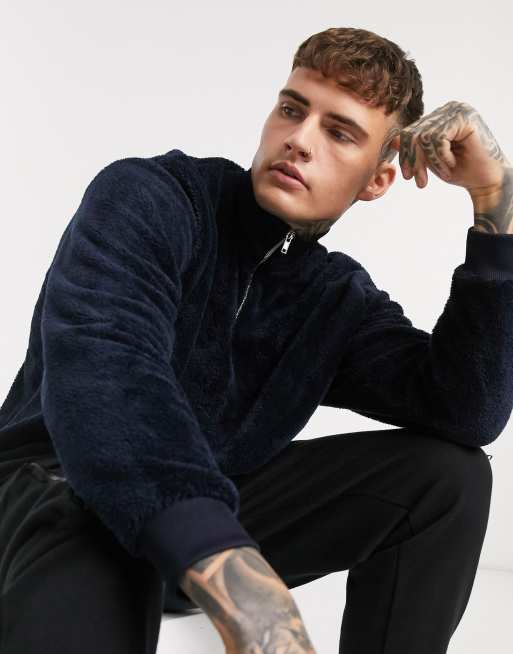 ASOS DESIGN teddy fleece oversized half zip sweatshirt in navy