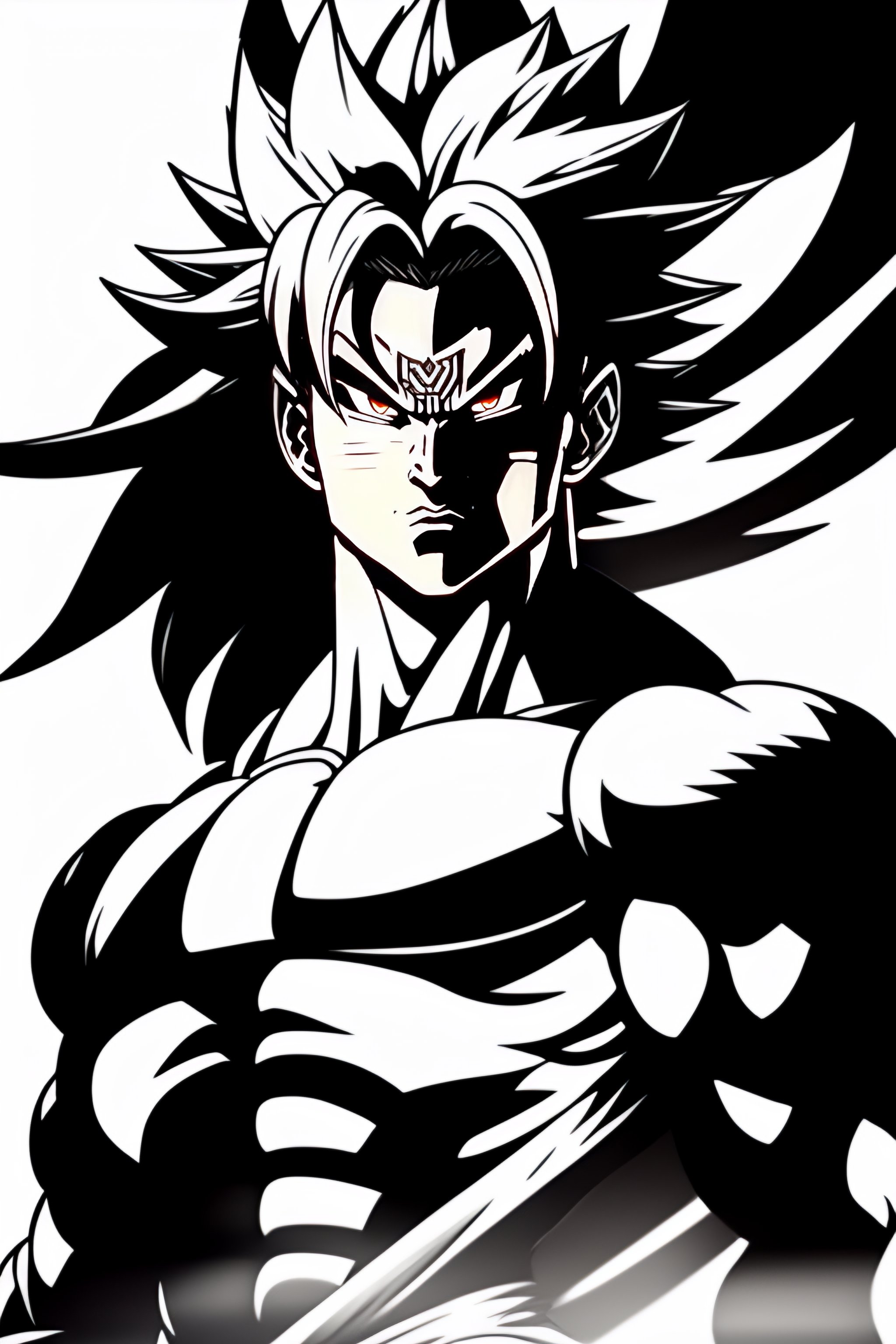 Lexica Dibujo a lapiz blanco y negro de goku en el templo de