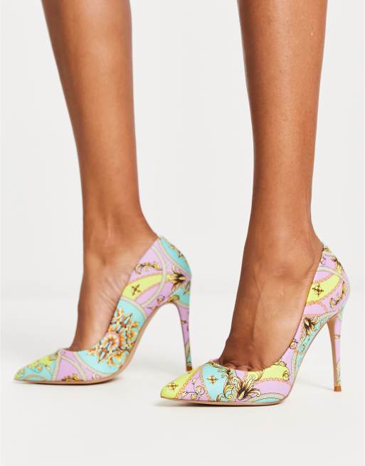 ALDO Stessy heeled pumps in bright scarf print ASOS