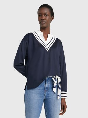 Relaxed Fit Stripe V Neck Sweatshirt Tommy Hilfiger USA