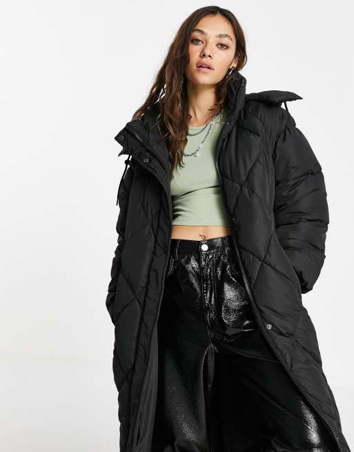 TOPSHOP Oversized Mid Length Puffer Jacket With Detachable Hood in