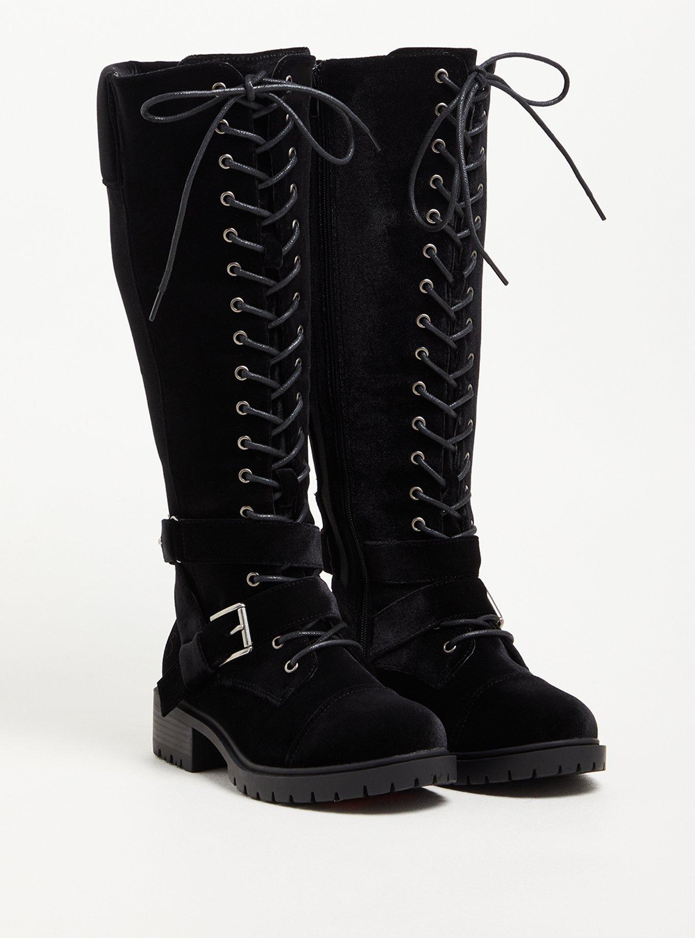 Plus Size Laceup Combat Knee Boot Velvet Black Torrid