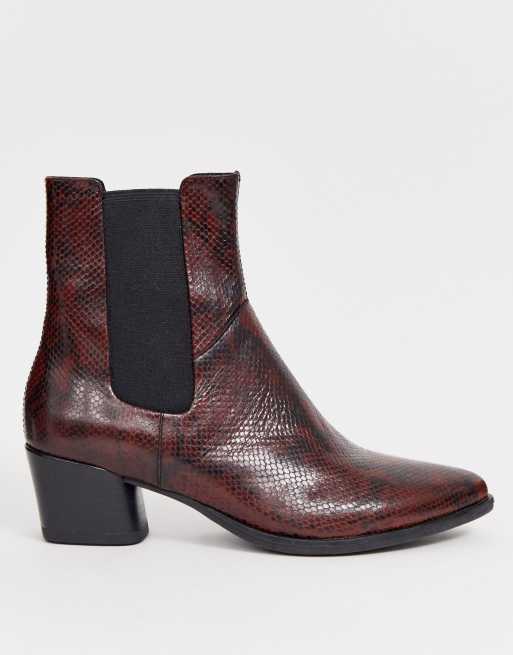 Vagabond lara sale chelsea boot, Vagabond Lara oxblood snake print mid heeled ankle boots ASOS sale