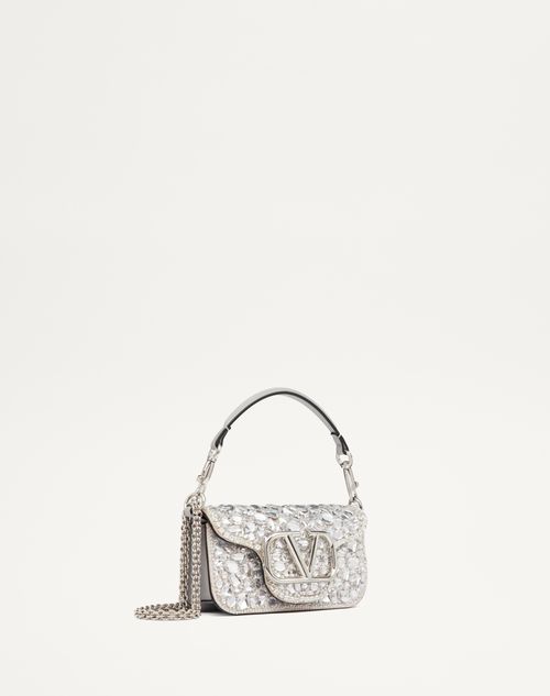 Loc Embroidered Small Shoulder Bag for Woman in Silver Valentino WX