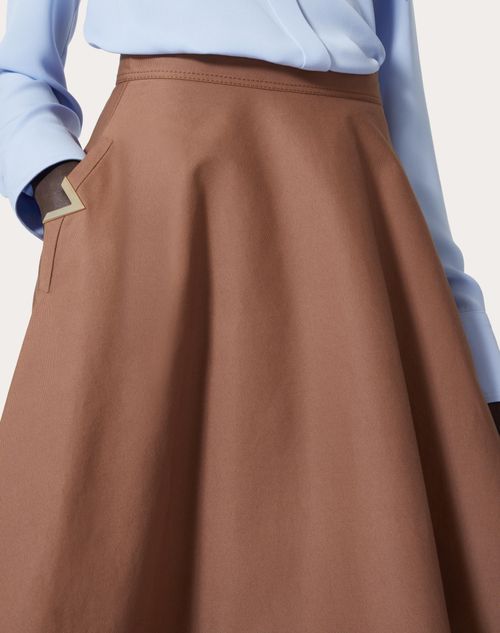 Stretch Cotton Canvas Midi Skirt for Woman in Clay Valentino US