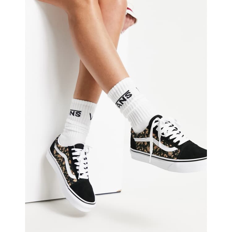 Vans noir sale paillette femme, Vans Old Skool Baskets Noir fleuri sale