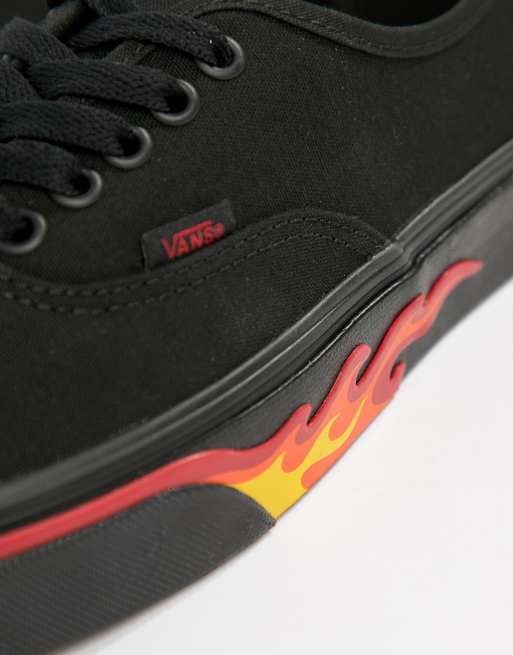 Vans Classics Authentic Schwarze Sneaker mit Flammen Design im