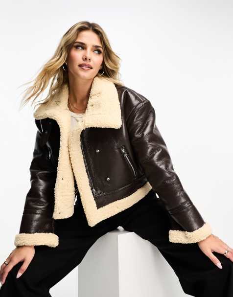 Manteau long en simili cuir marron et fourrure Brentiny Paris