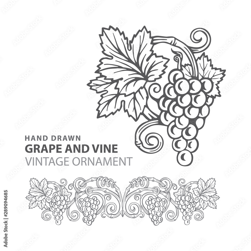 Vecteur Stock Grape. Hand drawn grape and vine engraving style
