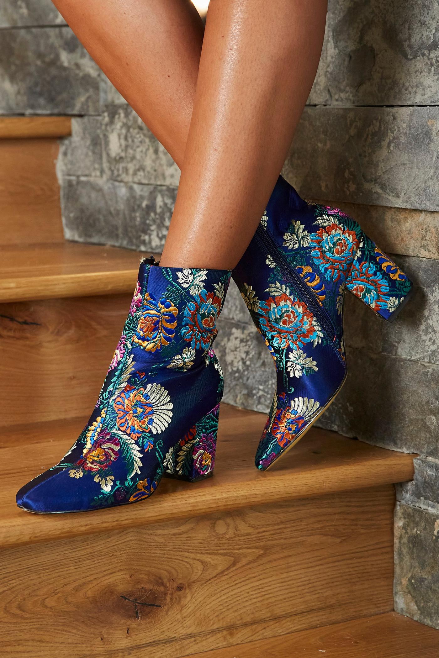 Jacquard Heeled Bootie Blue Multicolor Boston Proper