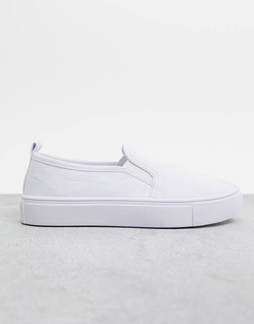 White sale laceless plimsolls, ASOS DESIGN Wide Fit Dotty slip on plimsolls in white sale