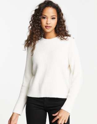White ribbed sale jumper womens, Women s Pullover Sweater Tops Long Sleeve Scoopneck Ribbed Knit sale