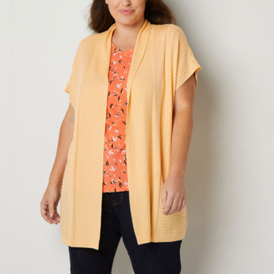 Liz Claiborne Plus Womens Short Sleeve Open Front Cardigan