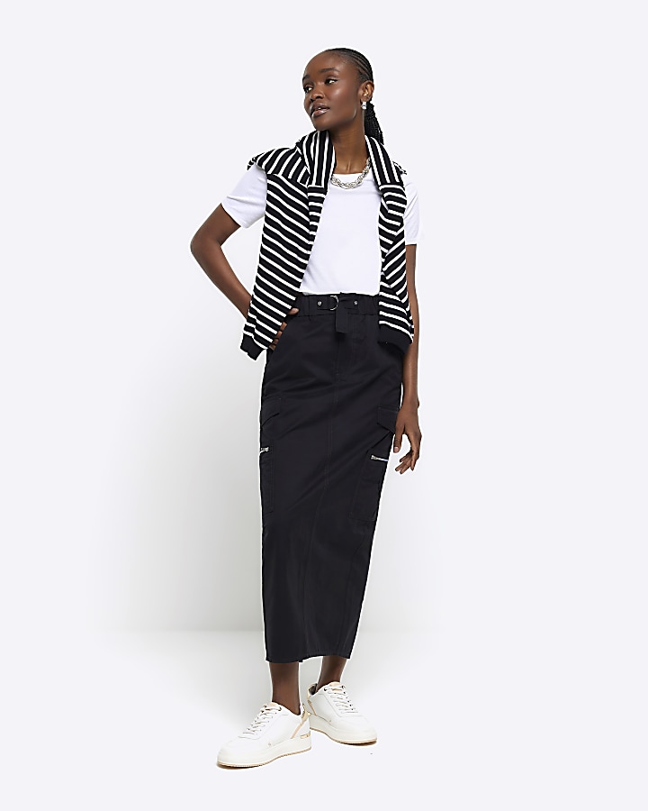 Black zip pencil midi skirt River Island