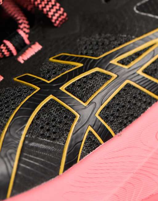 Asics sale waterproof trainers, Asics Running Trabuco 11 GTX waterproof trainers with contrast sole in black and pink sale