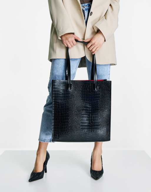 ASOS DESIGN Cabas avec compartiment pour ordinateur portable Noir croco