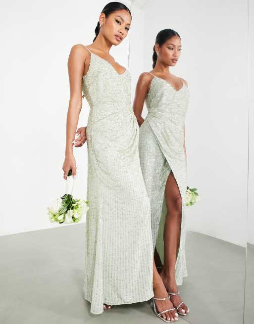 Asos cami sale maxi dress, ASOS DESIGN Bridesmaid embellished drape side cami maxi dress in sage green sale