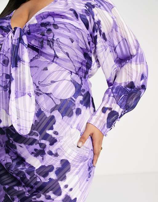 ASOS DESIGN Curve tie front plunge maxi dress with floral print in purple