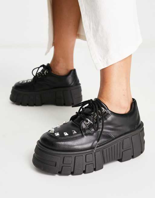 ASOS DESIGN Machine Chaussures plates chunky lacets Noir