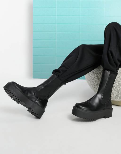 ASOS DESIGN Wide Fit Carla chunky flat knee boots in black