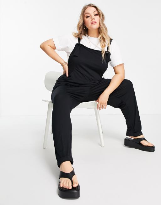 ASOS DESIGN Curve lounge jersey dungaree jumpsuit in black BLACK