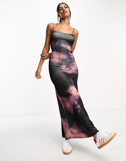 Asos design sale slinky maxi dress, ASOS DESIGN strappy slinky maxi dress in purple abstract print sale