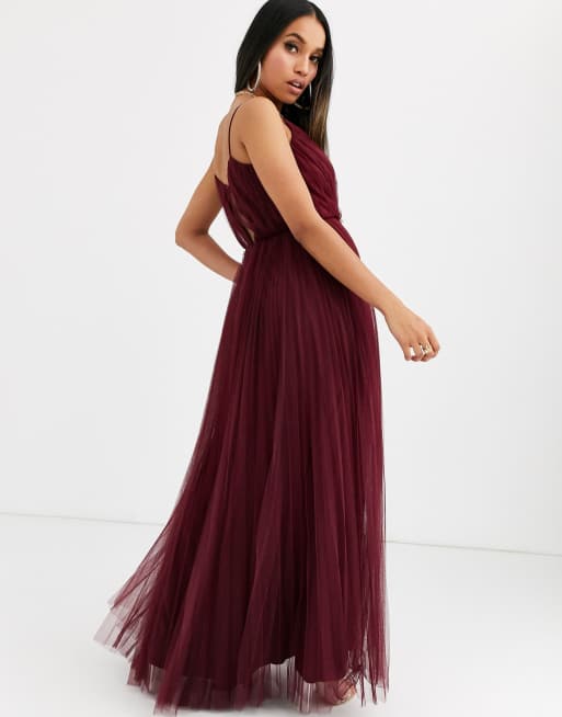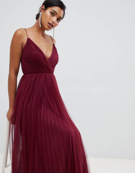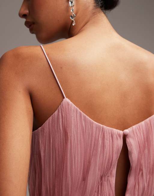 Asos design tall cami sale pleated tulle maxi dress, ASOS DESIGN Bridesmaid cami pleated tulle maxi dress in rose sale