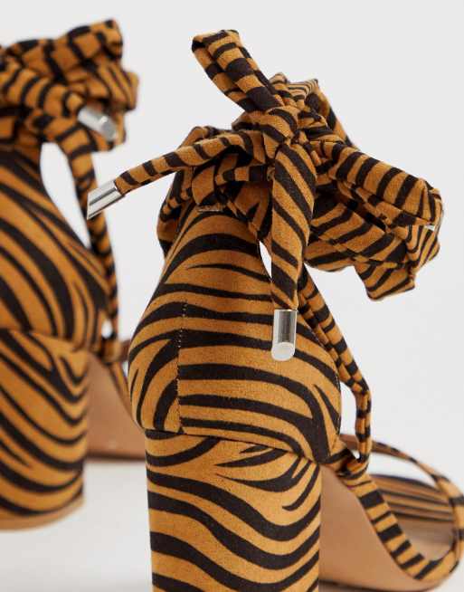 Asos design wide fit howling sale tie leg block heeled sandals, ASOS DESIGN Wide Fit Howling tie leg block heeled sandals In tiger sale