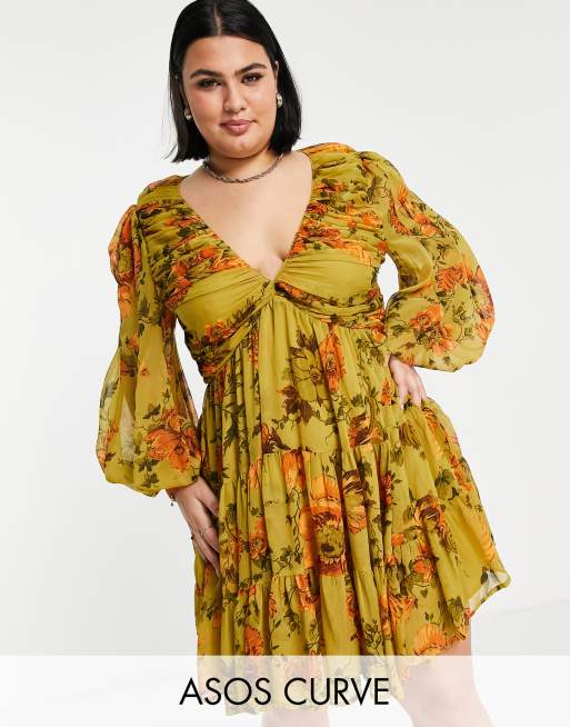 ASOS DESIGN Curve soft pleated bodice mini dress with tiered skirt