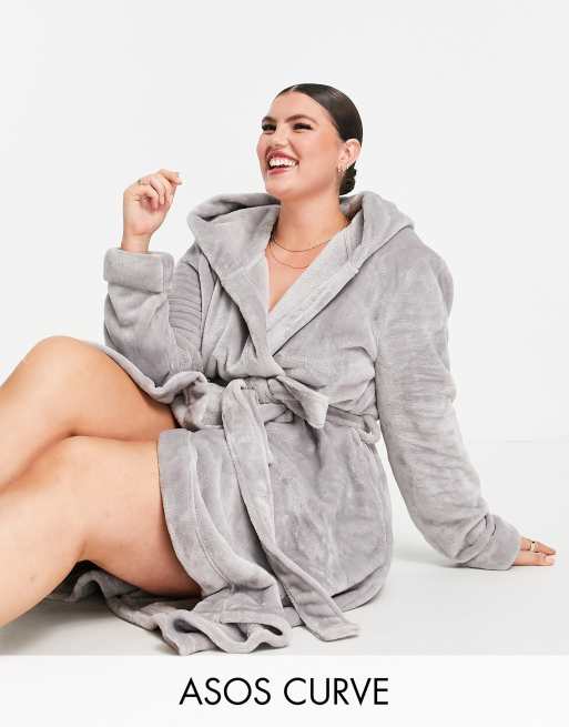 ASOS DESIGN Curve super soft fleece midi robe in grey