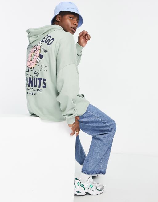 ASOS DESIGN super oversized hoodie in green with cartoon skate back print